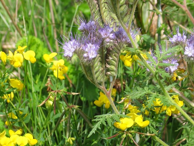 De fire græsarter er tuedannende, mens honningurt og kællingetand tiltrækker mange insekter, når de blomstrer.